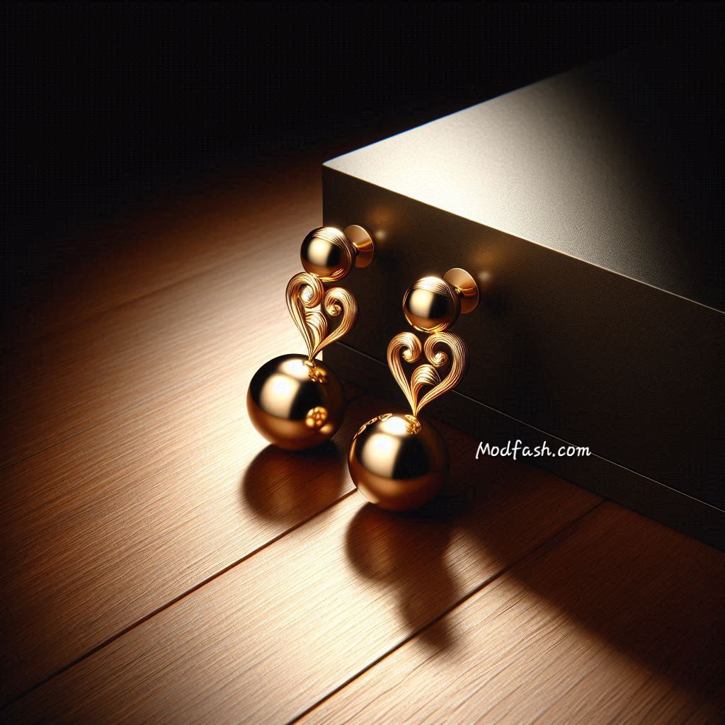 12. Gold Ball Earrings With Heart Filigree