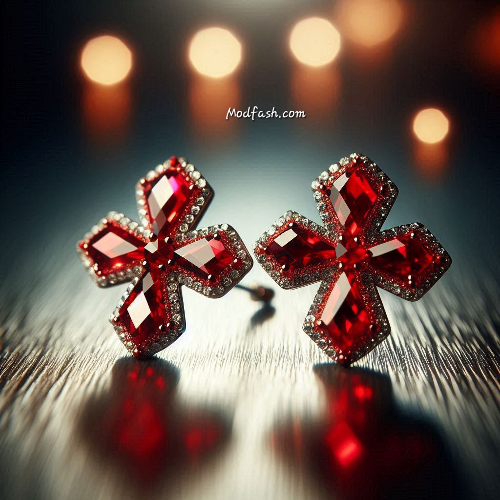 7. Red Gemstone Cross Earrings