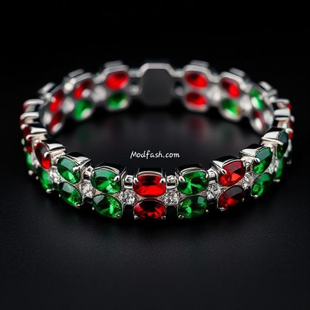 17. Red and Green Gemstone Bracelet
