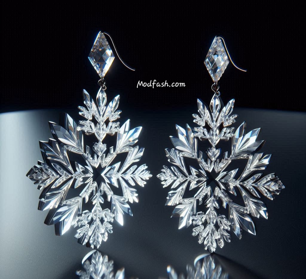 Snowflake-inspired earrings enhance light-colored or silver-toned Christmas outfits. Their sparkle complements winter fabrics and adds seasonal charm without overpowering the clothing.