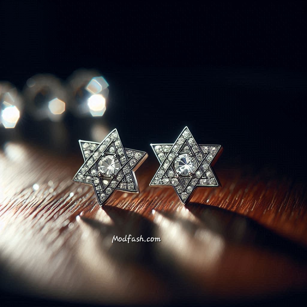 These earrings feature a Star of David design accented with clear crystals. They elevate Christmas outfits with a refined geometric touch, pairing especially well with solid-colored dresses.